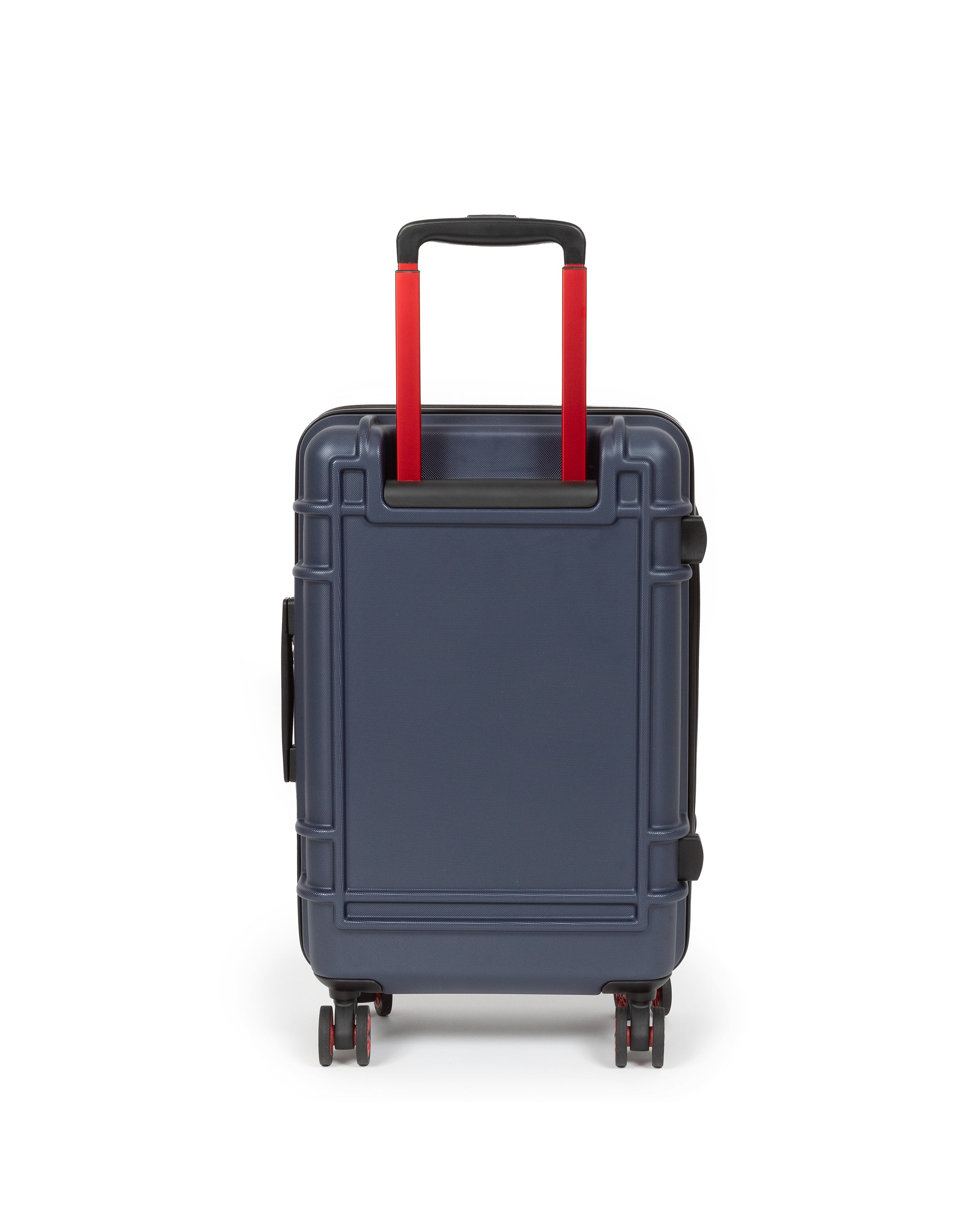 Our hardshell strict carry-on luggage features two zippered compartments for flying visits and overnight stays. This water-resistant cabin bag stands out with red accent details, "Built To Resist" handle branding and Japanese 360-degree spinning wheels.